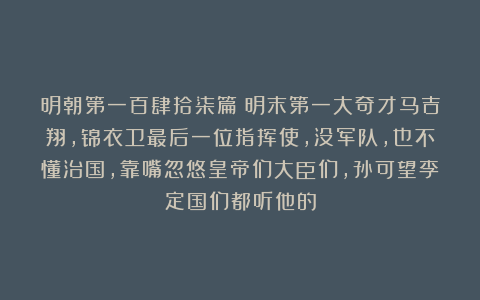 虽然吉翔害人不浅,但那是明末呀,没人会思考的,都还觉得老马是个好人。
