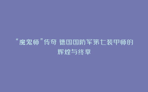 第七装甲师的历史充满了辉煌与惨烈,它不仅在二战初期战果显赫,更因其顽强的战斗精神和卓越的战斗力成为德军装甲部队中的传奇。