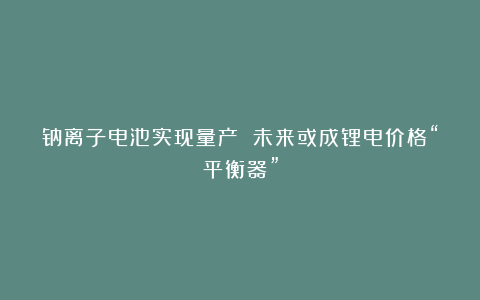中国科学院物理研究所清洁能源实验室主任胡勇胜:钠离子电池一旦规模化量产,其实对我国锂电产业的发展也起到平衡器的作用。它能找到一个价格可比性,锂电价格就不会像以前剧烈波动了。