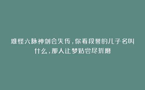 这件事自然与段誉的儿子有关。