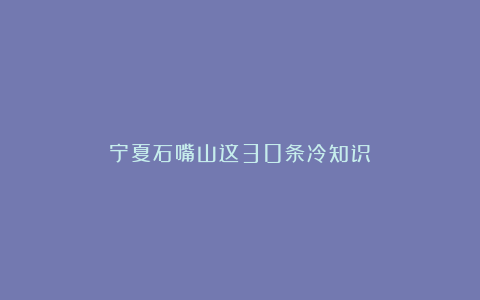 大家还知道哪些石嘴山的冷门知识呢