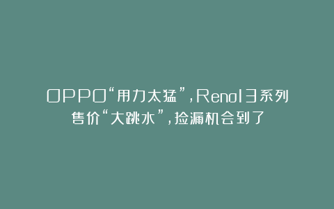 一般大家在选择手机的时候,并不会直接看高性价比手机,而是要看一款手机的综合配置,认为综合配置出众,那么这款手机的体验感就不会差,作为主流手机品牌的OPPO,曾经也被冠以“高价低配”的标签,也是因为以往配置不够透明化,导致很多人吃亏上当,但如今OPPO发生了很大的变化,性价比提升也是非常大,比如我们要说的Reno13系列。