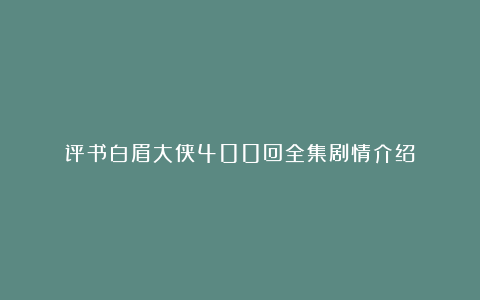 以上是《白眉大侠》400回全集的剧情介绍,其中包含了白眉大侠的成长、战斗和爱情故事。通过一系列的冒险和挑战,白眉大侠最终成为了一个真正的英雄,他的故事充满了动作、情感和智慧。