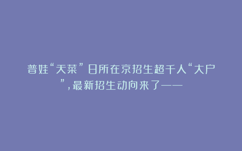 普娃“天菜”!8所在京招生超千人“大户”,最新招生动向来了——