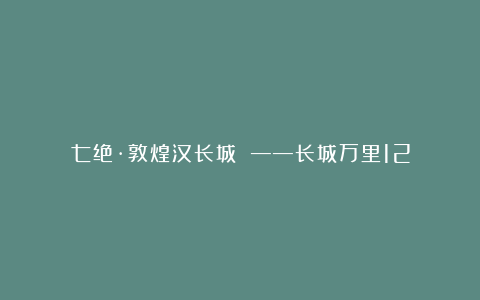 七绝·敦煌汉长城 ——长城万里12 1年前 七绝·敦煌汉长城 ——长城万里12 芦苇胡杨砂土拌,层层夯实筑城垣。飞天风刻两千载,五线谱音传燧烟。 标签:七绝长城 上一篇文章能成大器的人,身上会有的“特点”,任占一个都值得恭喜! 下一篇文章王雪涛的这些小品不仅养心安神,还秀色可餐