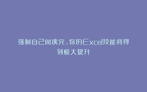 强制自己阅读完,你的Excel技能将得到极大提升!