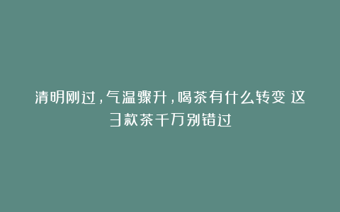 接下来就和大家好好聊聊,在这个升温的时节,喝茶到底该做出哪些改变,让每一口茶都能喝得应时又舒心。