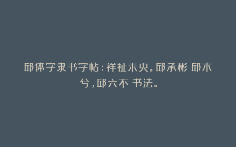 邱体字隶书字帖:祥祉未央。邱承彬(邱木兮,邱六不)书法。 8个月前 邱体字隶书字帖:祥祉未央。邱承彬(邱木兮,邱六不)书法 解密天珠,邱承彬编著,山东教育出版社出版。 邱承彬诗集,山东教育出版社出版,二十四节气诗大全。 浙江丽水邱体字隶书字帖紫气东来石刻。邱承彬(邱木兮,邱六不)书法石刻 标签:邱体邱承彬邱木 上一篇文章著名电影演员刘晓庆,七十岁了还要谈恋爱 下一篇文章阿丘哥哥生活照片