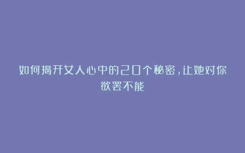 这些心理秘密是女人最真实、最隐秘的表现,只要你把握住这些技巧,就能在和她的互动中,精准地洞察她的内心需求,让她对你欲罢不能!