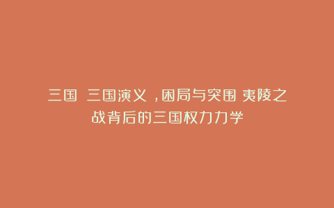 这场战役留给后世的,不仅是“以弱击强”的战术教训,更是对国际秩序本质的深刻揭示——在无政府状态的国际体系中,任何理想主义都需以实力为锚点。当我们站在猇亭古战场遗址时,依然能感受到那种穿透千年的战略焦虑:如何在绝对劣势中寻找相对优势,永远是弱小者的终极命题。