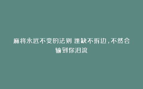 麻将永远不变的法则:逢缺不拆边,不然会输到你泪流!