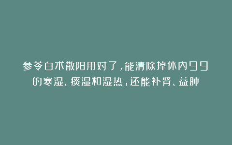 参苓白术散阳用对了,能清除掉体内99%的寒湿、痰湿和湿热,还能补肾、益肺!