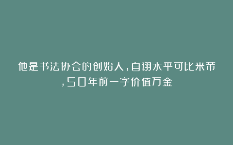 他是书法协会的创始人,自诩水平可比米芾,50年前一字价值万金!