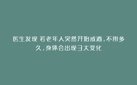 医生发现:若老年人突然开始戒酒,不用多久,身体会出现3大变化