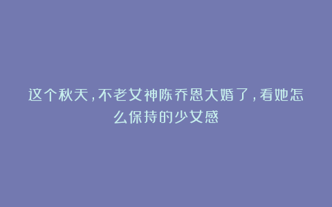 这个秋天,不老女神陈乔恩大婚了,看她怎么保持的少女感!