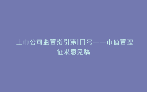 《上市公司监管指引第10号——市值管理(征求意见稿)》