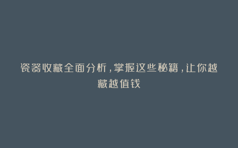 27天前本文来自玉雕名家官网 关于瓷器种类,划分方式其实有很多,我们根据瓷器的不同特点都可以将其分为不同的种类。比如按颜色分,我们可将瓷器种类分为’釉下彩、釉上彩、斗彩和颜色釉’;按朝代分,我们可 …