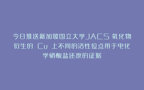 今日推送新加坡国立大学JACS:氧化物衍生的 Cu 上不同的活性位点用于电化学硝酸盐还原的证据