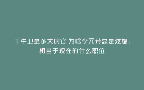 千牛卫是多大的官?为啥李元芳总是炫耀,相当于现在的什么职位?