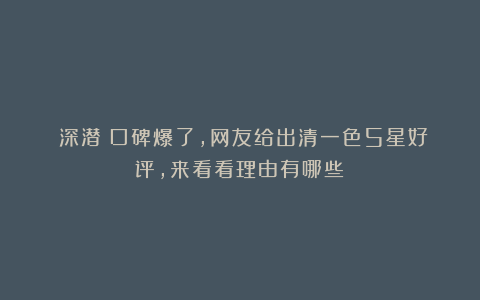 《深潜》口碑爆了,网友给出清一色5星好评,来看看理由有哪些?