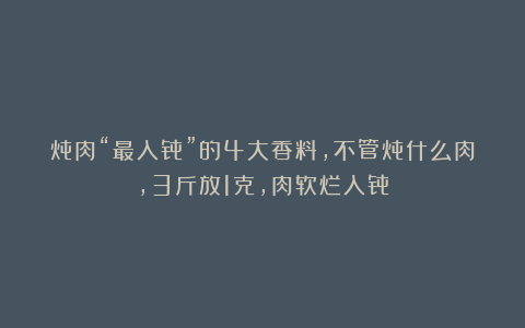炖肉“最入骨”的4大调料,3斤肉放1克,肉鲜嫩入骨,越嚼越香
