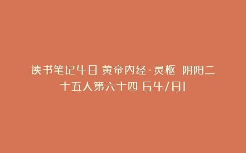 读书笔记48《黄帝内经·灵枢》|阴阳二十五人第六十四(64/81)