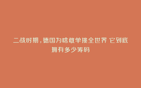 10天前之前有盘点过二战德军的伙食,感兴趣的小伙伴可以去往期里看看,那时候只是说了每个士兵的基本伙食保障,那么这些食物是如何作出来的呢? 在二战中,德军是非常重视士兵们的吃喝,因此配备了强有力的后勤保障,这样 …