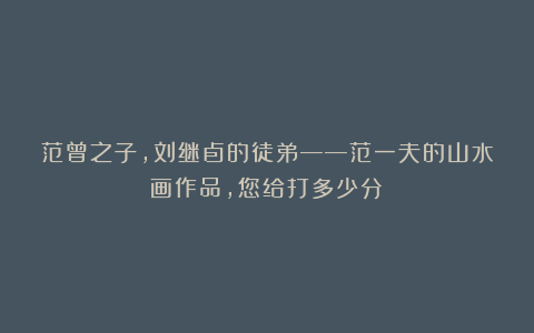 范曾之子,刘继卣的徒弟——范一夫的山水画作品,您给打多少分?