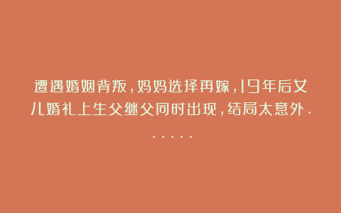 遭遇婚姻背叛,妈妈选择再嫁,19年后女儿婚礼上生父继父同时出现,结局太意外……