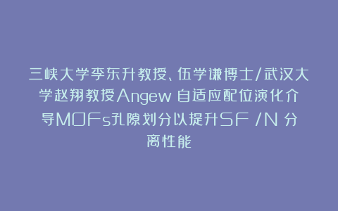 三峡大学李东升教授、伍学谦博士/武汉大学赵翔教授Angew:自适应配位演化介导MOFs孔隙划分以提升SF₆/N₂分离性能