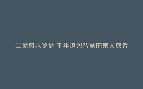 自然风水学从远古走来︱为往圣继绝学、为中华创绝学