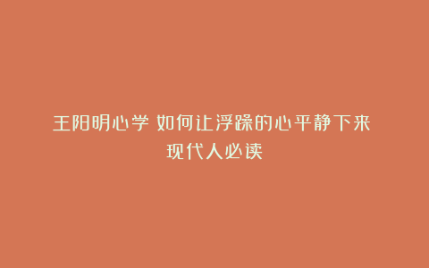 王阳明心学:如何让浮躁的心平静下来?(现代人必读)