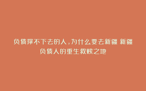 负债撑不下去的人,为什么要去新疆?新疆负债人的重生救赎之地
