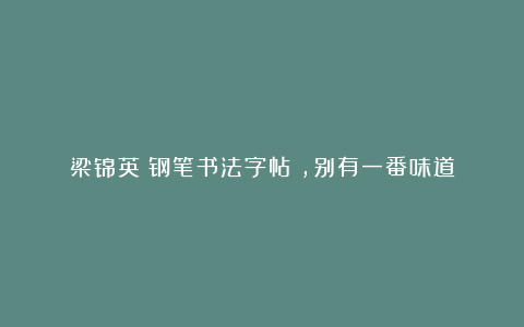 翰墨匠心:跟梁鼎光先生学钢笔书法,领悟笔尖下的修行之道