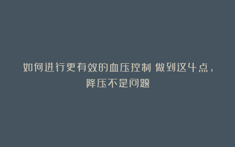 降压药一吃就是一辈子?打破这个宿命认知,你才有机会逆转高血压!