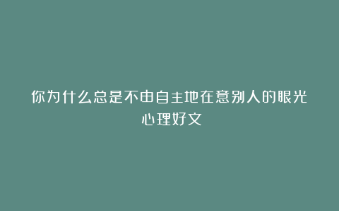 你为什么总是不由自主地在意别人的眼光?(心理好文)