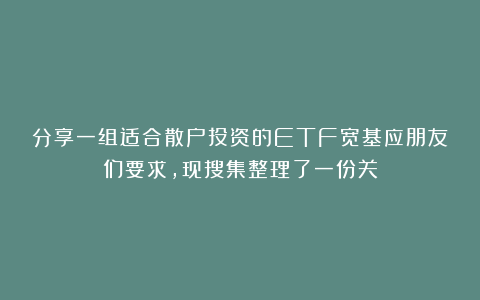 分享一组适合散户投资的ETF宽基应朋友们要求,现搜集整理了一份关