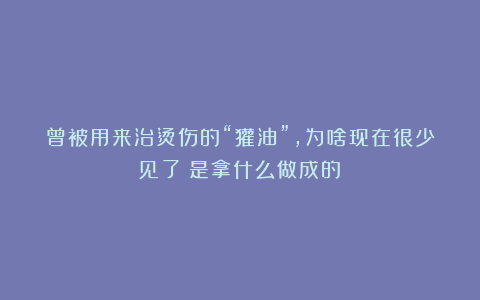 曾被用来治烫伤的“獾油”,为啥现在很少见了?是拿什么做成的?