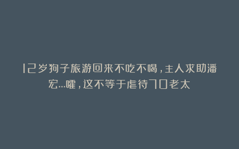 12岁狗子旅游回来不吃不喝,主人求助潘宏…嚯,这不等于虐待70老太?