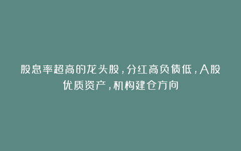 20只低估值 高股息潜力股出炉,多家行业龙头在列