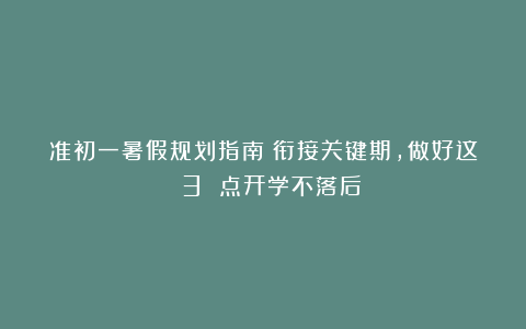 准初一暑假规划指南:衔接关键期,做好这 3 点开学不落后