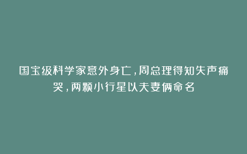 国宝级科学家意外身亡,周总理得知失声痛哭,两颗小行星以夫妻俩命名