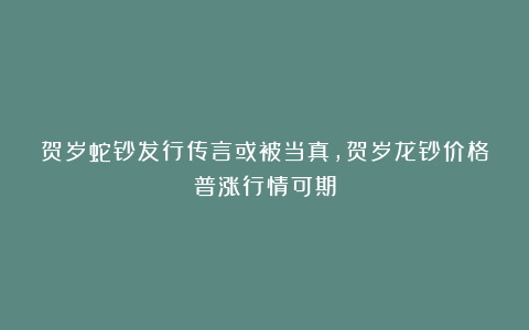 贺岁蛇钞发行传言或被当真,贺岁龙钞价格普涨行情可期