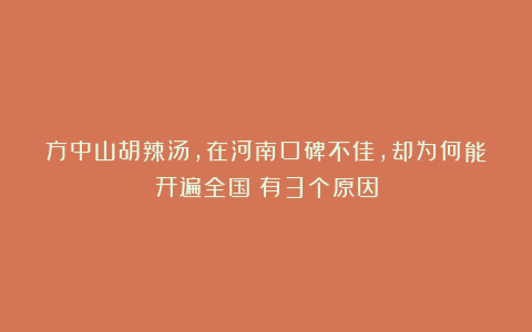 方中山胡辣汤,在河南口碑不佳,却为何能开遍全国?有3个原因