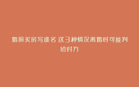 婚前买房写谁名?这3种情况离婚时可能判给对方!
