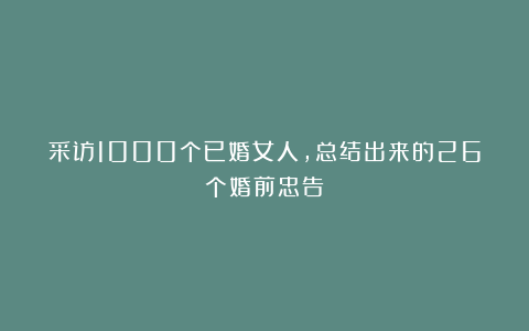 终于明白为什么结婚前需谨慎!网友分享全是经验,让人心有余悸