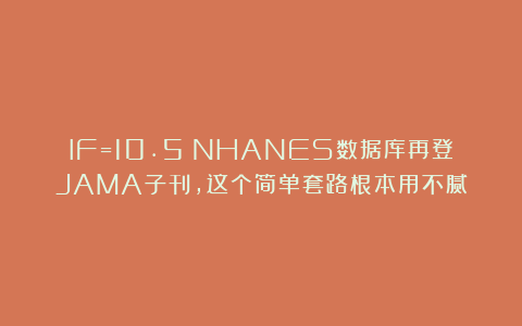 IF=10.5!NHANES数据库再登JAMA子刊,这个简单套路根本用不腻