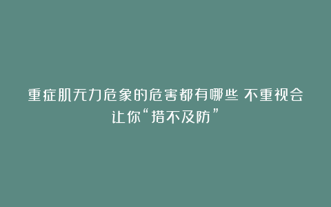重症肌无力危象的危害都有哪些?不重视会让你“措不及防”!