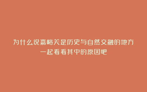 为什么说嘉峪关是历史与自然交融的地方?一起看看其中的原因吧!
