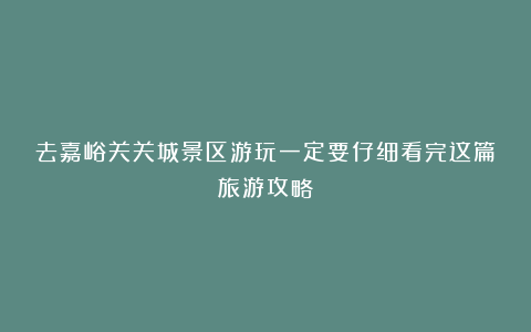 去嘉峪关关城景区游玩一定要仔细看完这篇旅游攻略